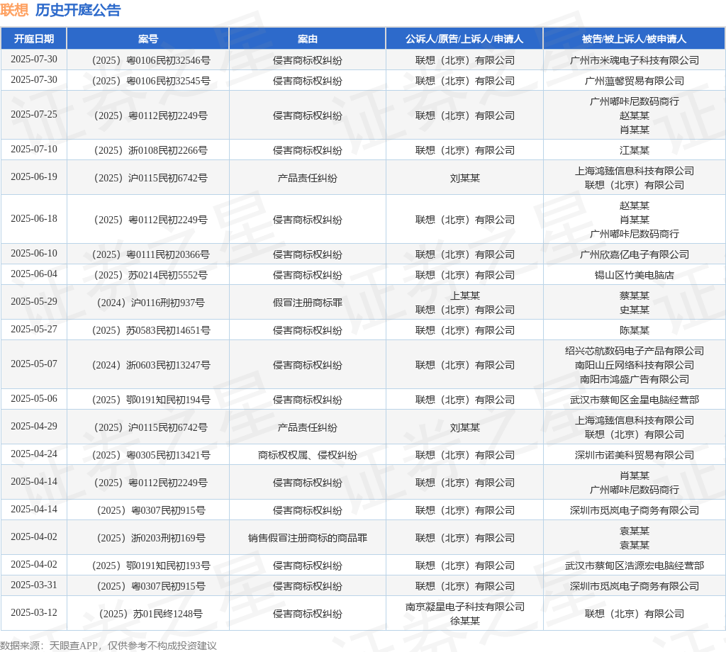 本站消息,根据天眼查APP显示,近日公布了一则联想(北京)有限公司作为被告/被上诉人的开庭公告,详细内容如下: